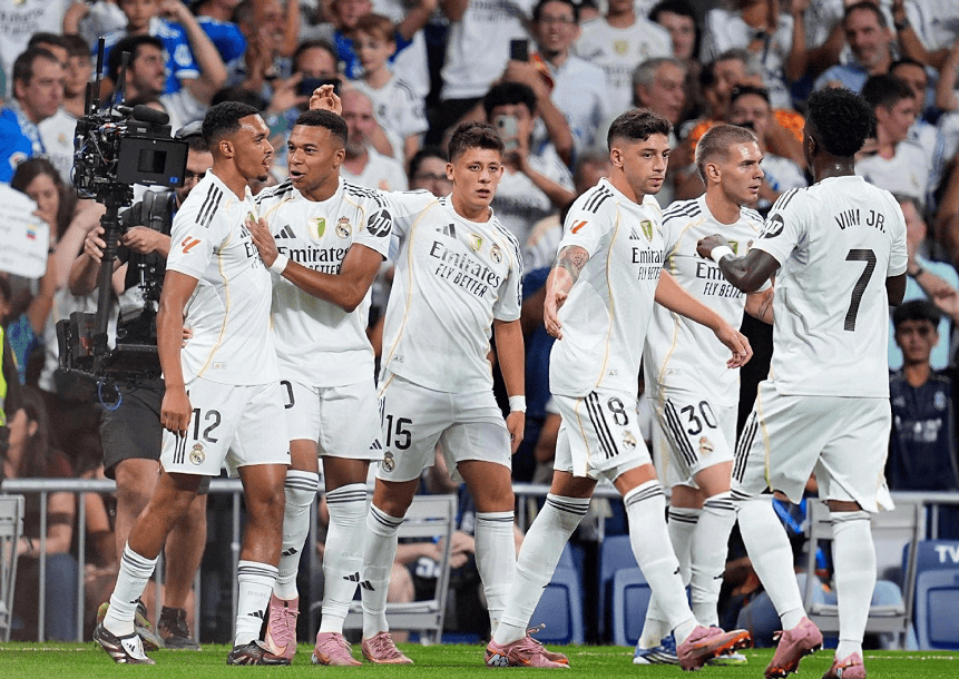 在伯纳乌球场皇马运气不佳,不仅早早让马洛卡利用头球攻破了库尔图瓦的十指关,比赛中还有姆巴佩、居勒尔的3粒进球被主裁判吹掉,好在银河战舰进攻能力足够强,靠着居勒尔和维尼修斯的进球,在主场2-1逆转获胜,豪取三连胜登顶西甲积分榜。